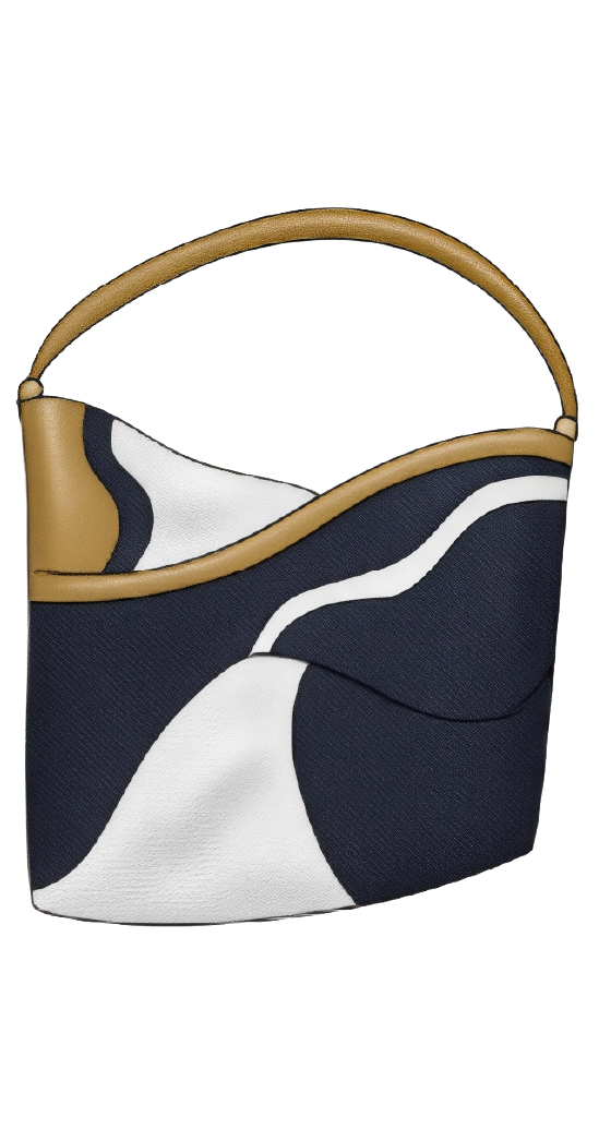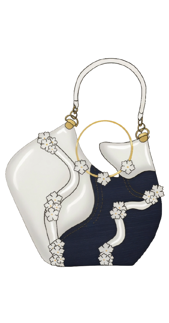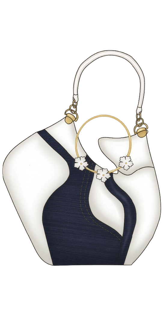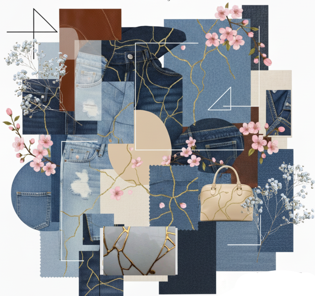 “Florecimiento Circular” es una colección que fusiona la resistencia del denim reciclado con la atemporalidad del cuero para crear accesorios de calzado y marroquinería que simbolizan la transformación y la resiliencia. Inspirada en el arte japonés del kintsugi, que repara cerámicas rotas con resina y polvo de oro, esta técnica no solo restaura la funcionalidad de las piezas, sino que también realza sus cicatrices, convirtiéndolas en elementos de belleza y singularidad.