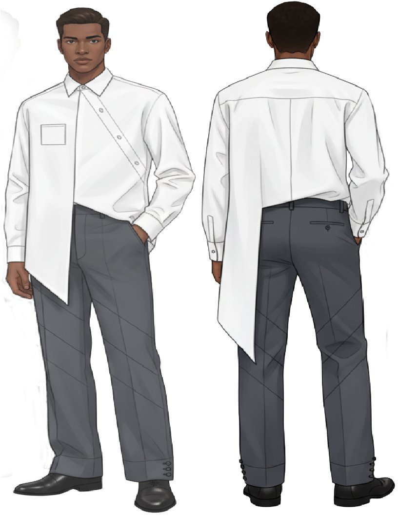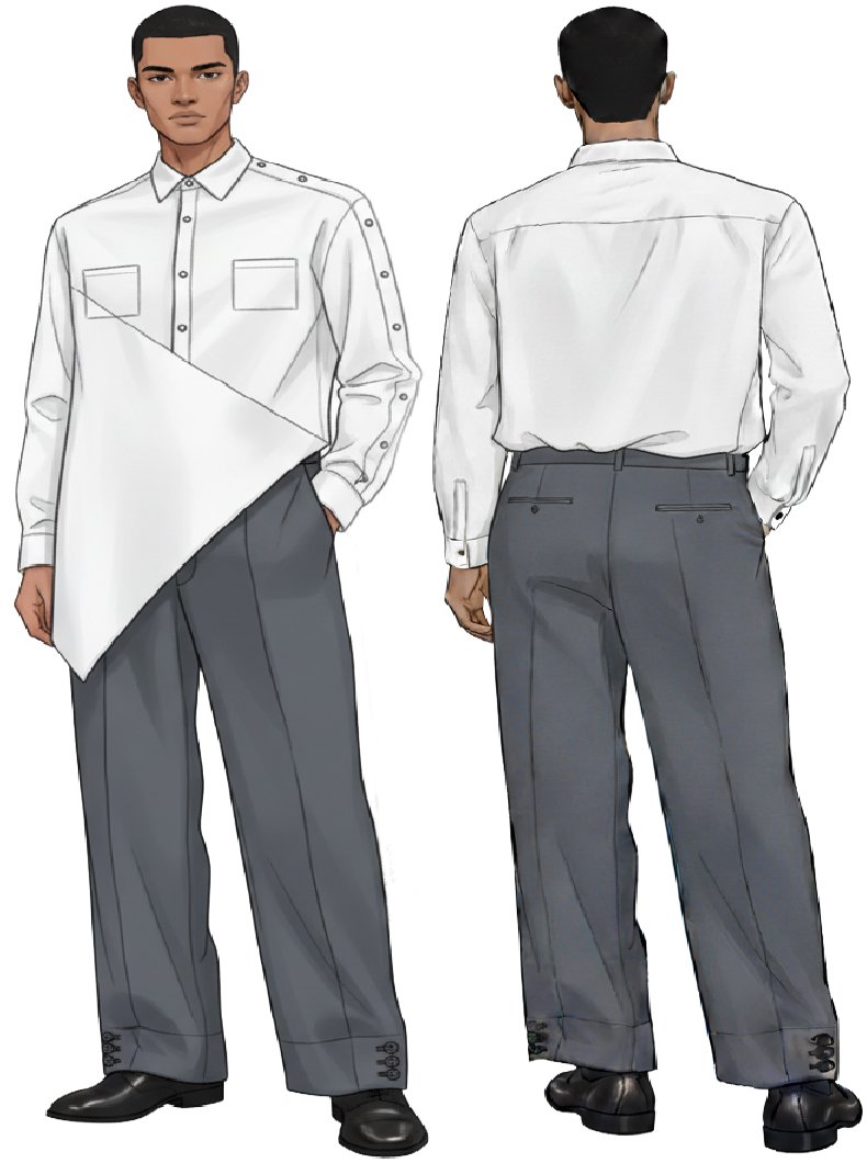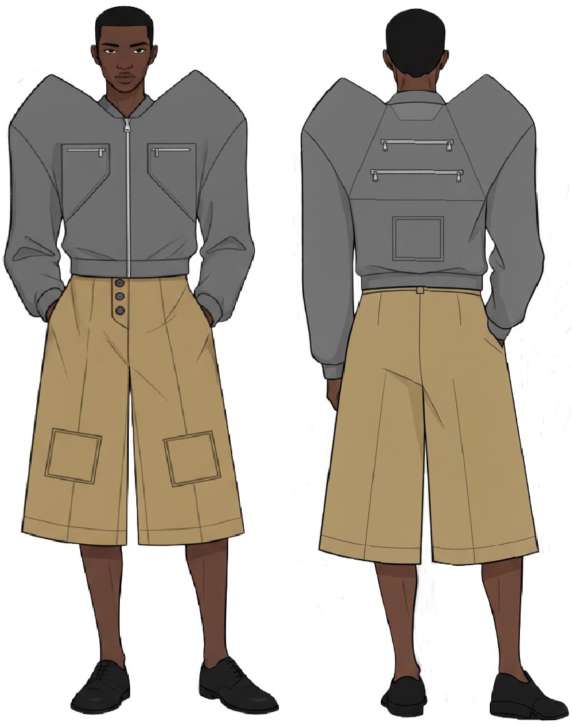 El proyecto, desarrollado en colaboración con María Camila Salazar Suárez, tuvo como propósito diseñar prendas que equilibraran fuerza estética y funcionalidad, apoyadas en conceptos como simultaneidad y duración (Bergson). Entre los principales retos estuvo transformar ideas abstractas en propuestas viables y cómodas, alcanzando un resultado coherente que combina investigación, narrativa futurista y sensibilidad contemporánea.