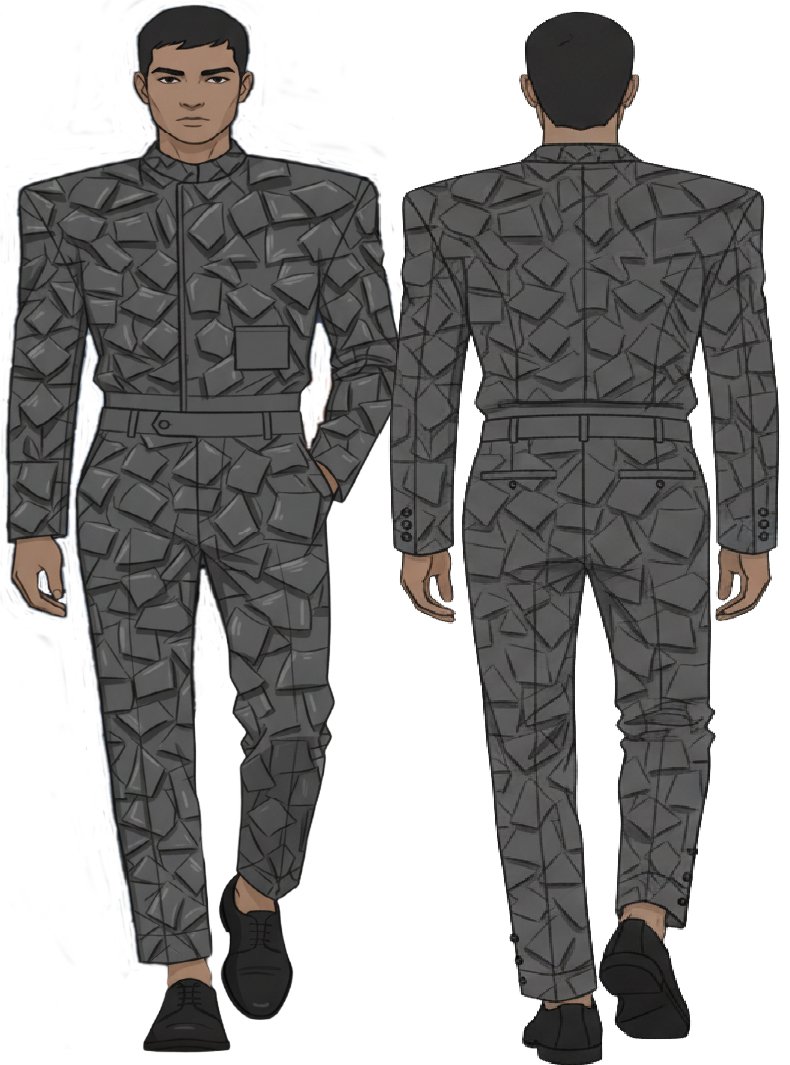 Esta investigación permitió traducir principios filosóficos y artísticos en decisiones de diseño, donde la figura del titán se materializa mediante la repetición modular, la geometría estructural y la exaltación de la anatomía masculina. El vínculo entre cuerpo y máquina se interpreta en siluetas geométricas que sugieren movimiento continuo y energía, reforzando la narrativa de un hombre innovador y autoexigente, propio de la contemporaneidad. Así, Titanismo logra articular hallazgos históricos y filosóficos en una propuesta de moda que celebra la fuerza estética y conceptual del superhombre, actualizada a las sensibilidades del usuario moderno.